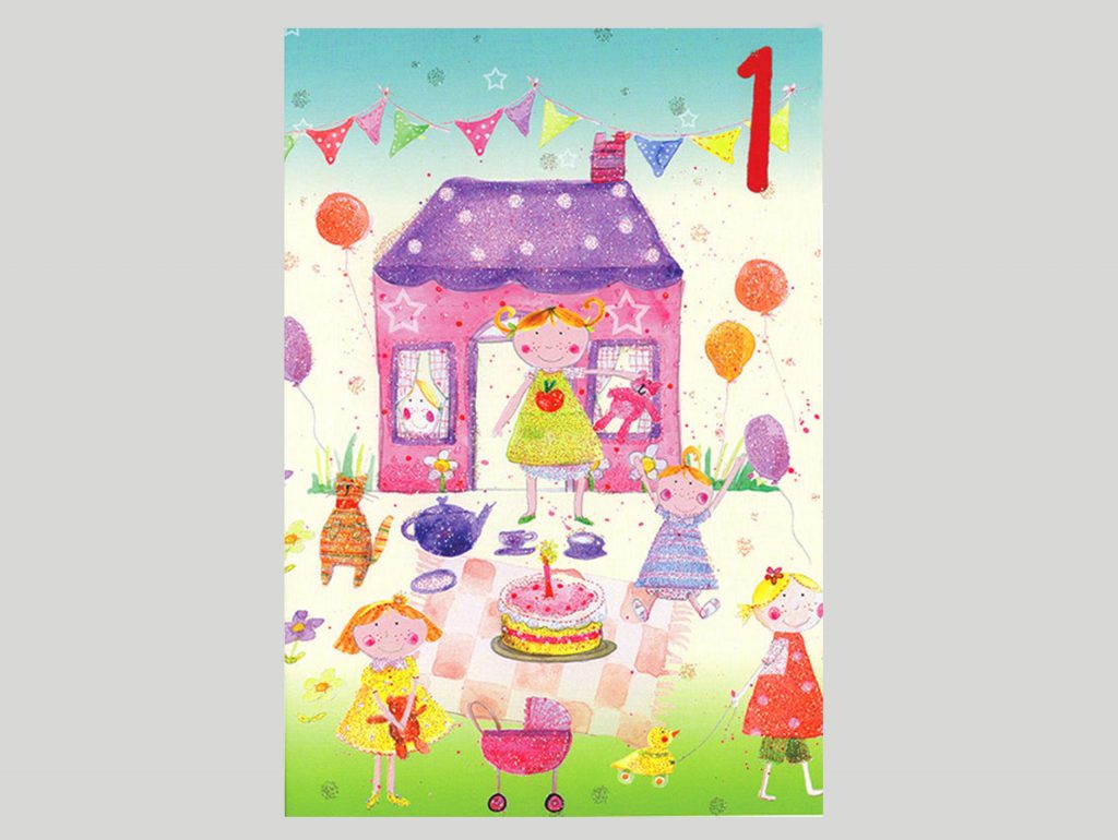1st Birthday Card for Girl – Having a Party In The Garden – 1 Year Old