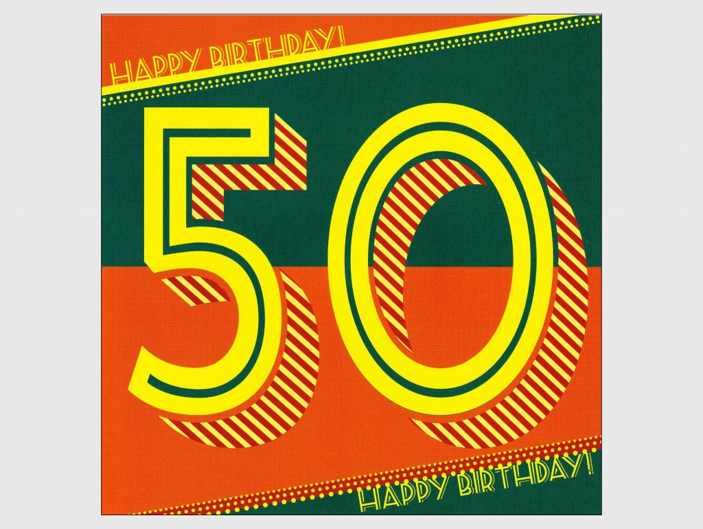 50th Birthday Card for Man or Woman – Brightly Coloured Jazzy Greetings Card – Blank Inside