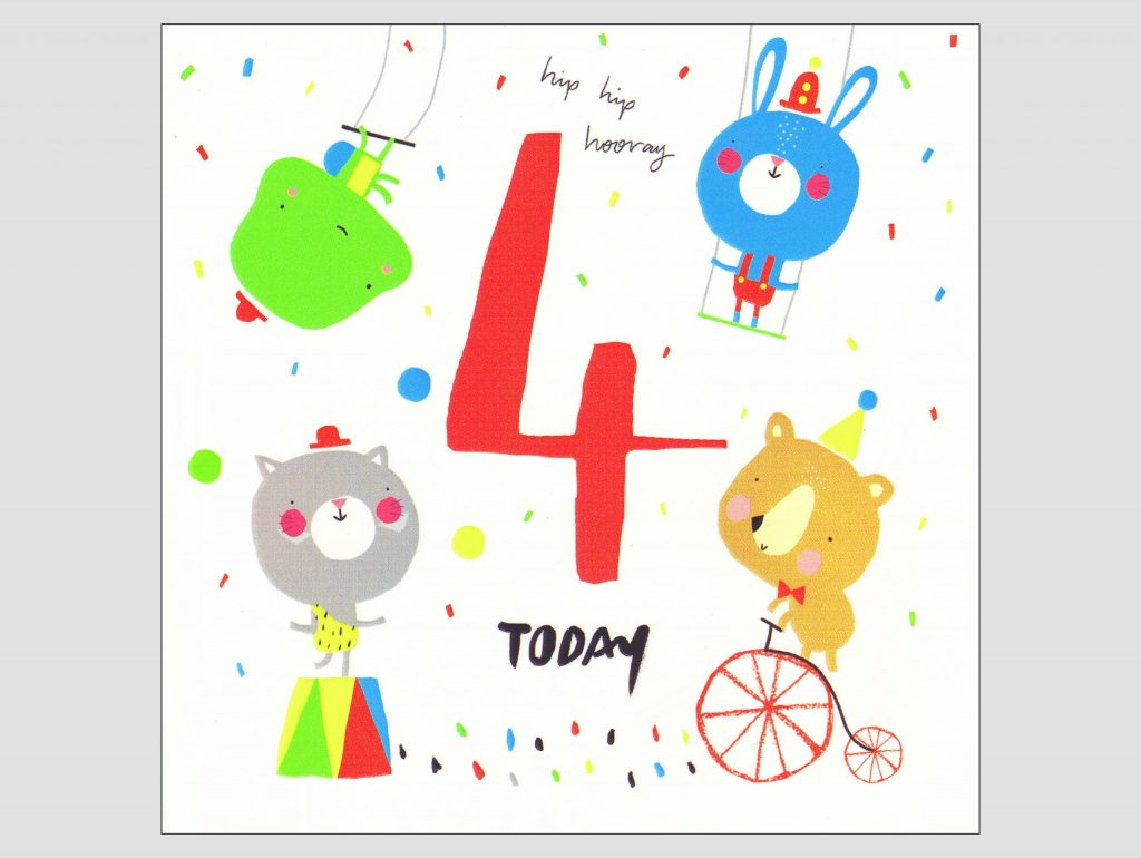 4th Birthday Card for 4 Year Old – Age 4 Today – Performing Circus Animals