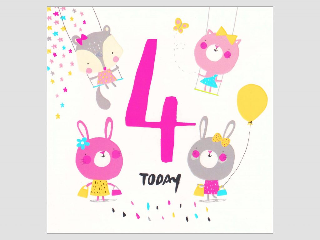 4th Birthday Card for 4 Year Old Girl – Age Four Today Performing Circus Animals