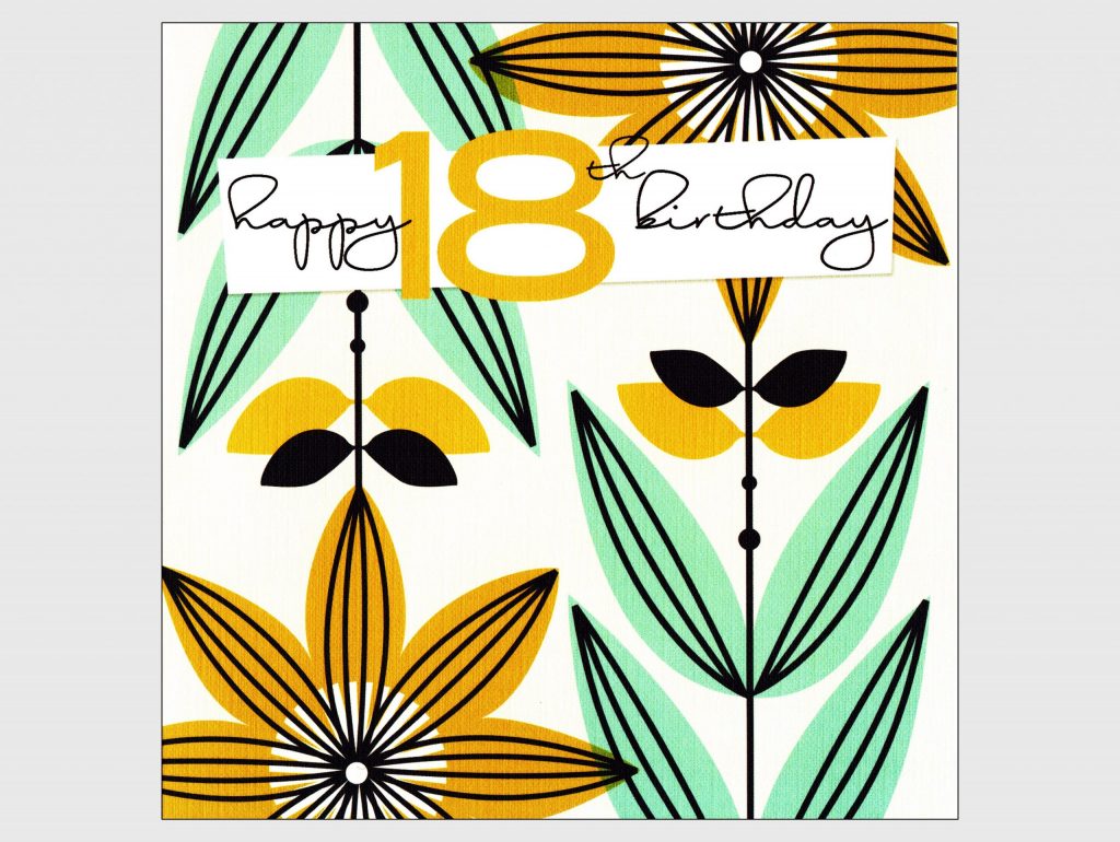 Retro Style 18th Birthday Card – Graphic Floral Design – Blank Inside