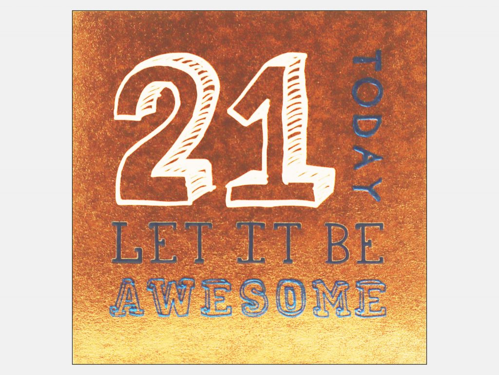 Metallic 21st Birthday Card – 21 Today – Let It Be Awesome – Unisex