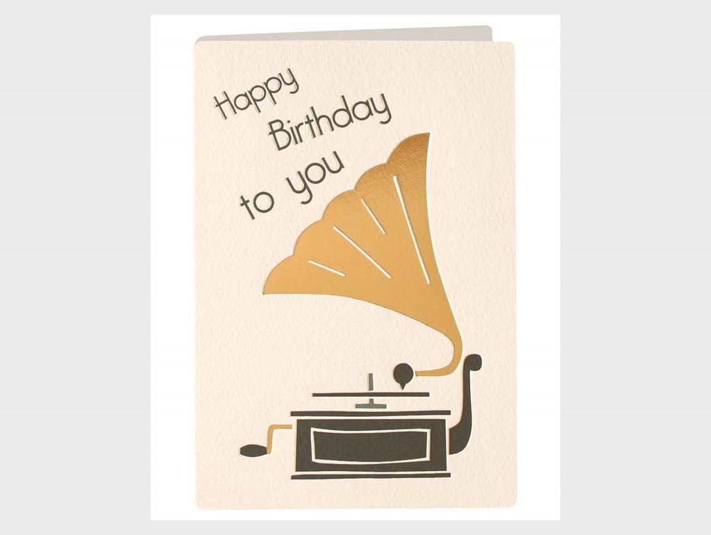 Birthday Card Gramophone Vintage Record Player Music Unisex Man Woman Greetings