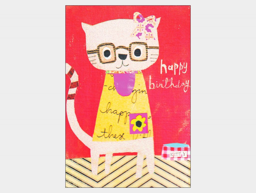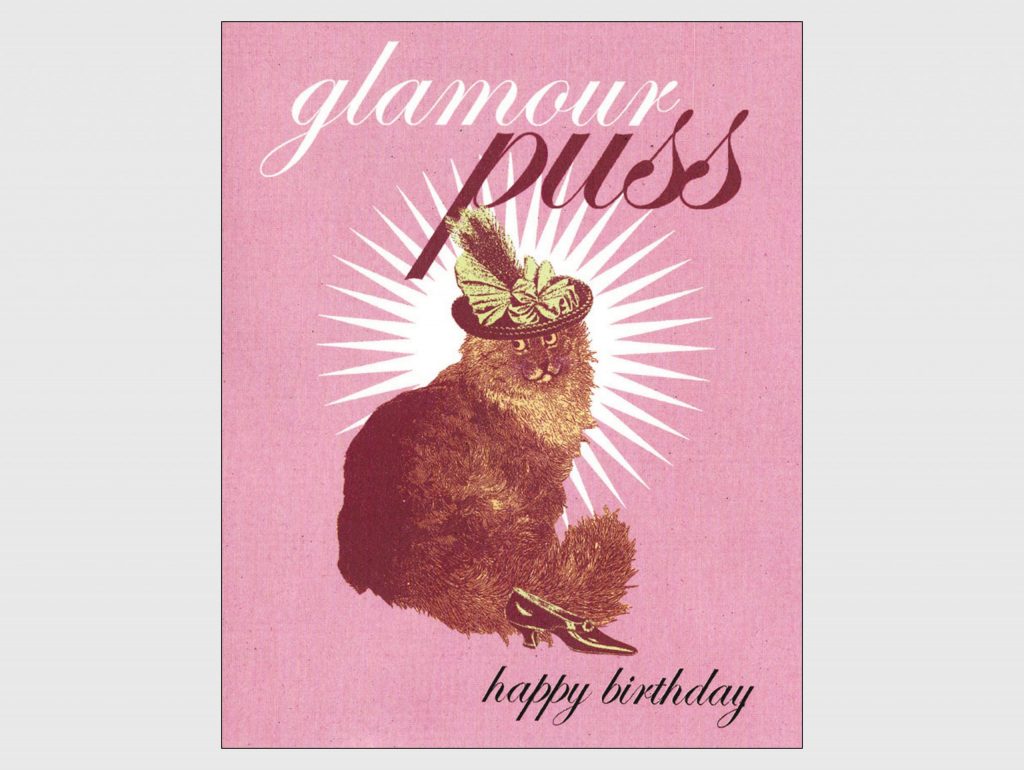 Birthday Greetings Card – Glamour Puss – Vintage Style Fashion Cat in a Hat