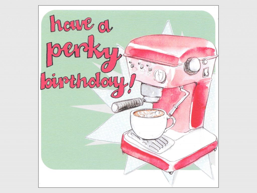 Funny Birthday Card – Have a Perky Birthday Coffee Theme – Friends.