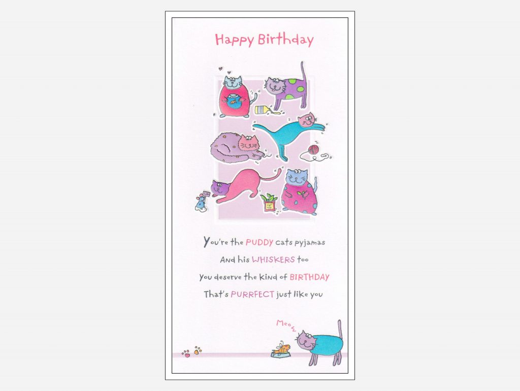 Funny Cat Birthday Card for Cat Lovers – Cats Pyjamas Whiskers Purrfect – Unisex