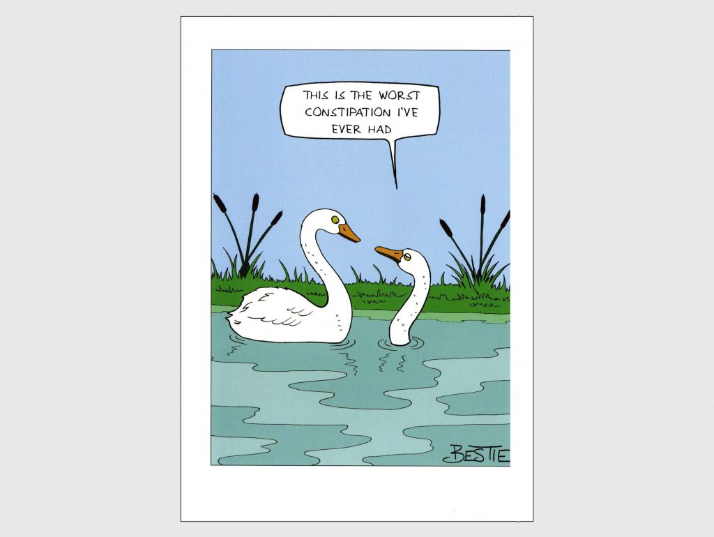 Funny Greetings Card for Friend – Constipated Swans – for Wildlife Fan Bird Watcher – Blank Inside